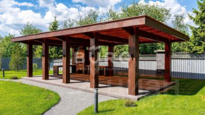 Уличное освещение создает романтическую обстановку в вечернее время. Организована открытая беседка с зоной для барбекю.