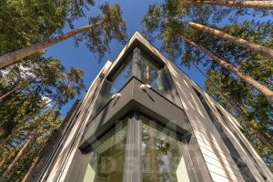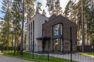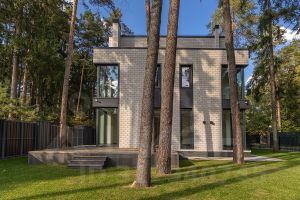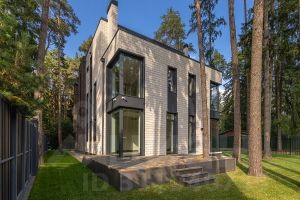 Новый загородный дом в современном стиле общей площадью 380 м2 построен на уютном лесном участке площадью 8 соток в дали от дороги в охраняемом коттеджном посёлке "Успенские дачи".