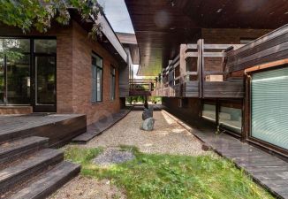 На живописном лесном участке расположено несколько строений общей площадью 918м2: жилой дом 514м2, дом для персонала, гараж на 2 м/м, гостевой дом, дом охраны и ббк