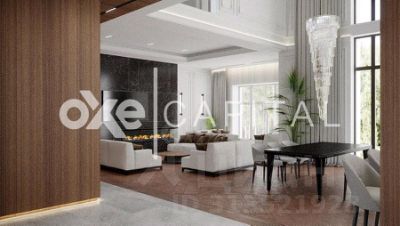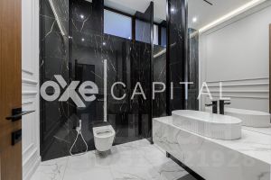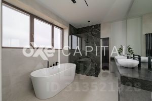 Жилая площадь дома 524м2, а также 222м2 просторные видовые террасы и крытое патио. Цоколь: кинотеатр, спортзал, 2 санузла, блок для персонала на 2 комнаты, постирочная, гардеробная, комната хранения. 1 этаж: холл, кухня, обеденная зона, просторная гостиная со вторым светом высотой 7 метров, спальня, 2 санузла, гардеробная, гараж, котельная. 2 этаж: 4 спальни, 3 санузла, 3 гардеробные. Гараж: в контуре дома 1 м/м.