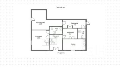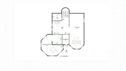 1-й уровень: прихожая, холл, гостиная, кухня-столовая, санузел.