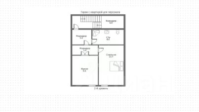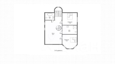 3-й уровень: холл, 2 спальни, 2 санузла.