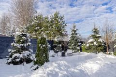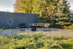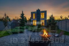 Территория 7 соток оформлена профессиональным ландшафтным дизайном с селективными соснами и плодовыми деревьями. Во дворе — уютная лаунж-зона с дровяным камином, который можно использовать как мангал.