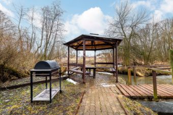 - Обустроенный берег реки для прогулок и релакса — идеальное место для спокойных вечеров на природе.