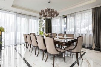 В доме предлагается премиальная отделка "под ключ", с высококачественной мебелью и тремя этажами, каждый из которых обладает своим уникальным стилем. Спальные комнаты в количестве пяти штук предоставляют комфорт и уют. Дополнительные комнаты включают в себя кухню, гостиную, сауну, спортзал, библиотеку и молитвенную комнату. Дополнительные удобства включают гараж на две машины с квартирой для персонала и летнюю веранду с барбекю.