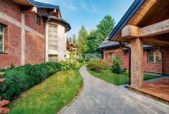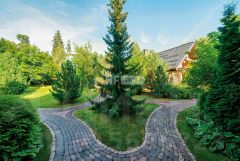 На обширном участке выполнен прекрасный ландшафтный дизайн - настоящий собственный парк, где всегда много солнечного света. Мощёные дорожки извиваются среди лужаек, многочисленных раскидистых деревьев и кустарников. Перед гаражом организована большая площадка для парковки.