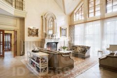 - Гостиная с диванами Bruno Zampa, витринами Angelo Cappellini и светильниками Zonca, где готический модерн сводов сочетается с элегантной классикой камина;