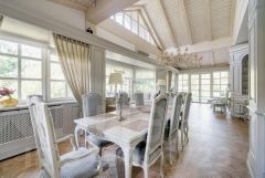 1 этаж: холл, прихожая, гардеробная, с/у, кухня-столовая, северная веранда для приема гостей, кабинет с выходом на террасу, гостиная с камином, тренажерный зал, с/у, кабинет, хозяйская спальня с гардеробной и с/у и выходом на просторную террасу.
