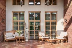 Жилой дом площадью 1185 м² наполнен естественным светом благодаря панорамным окнам, второму свету в гостиной и высоким потолкам. Интерьеры демонстрируют стиль тихой роскоши: