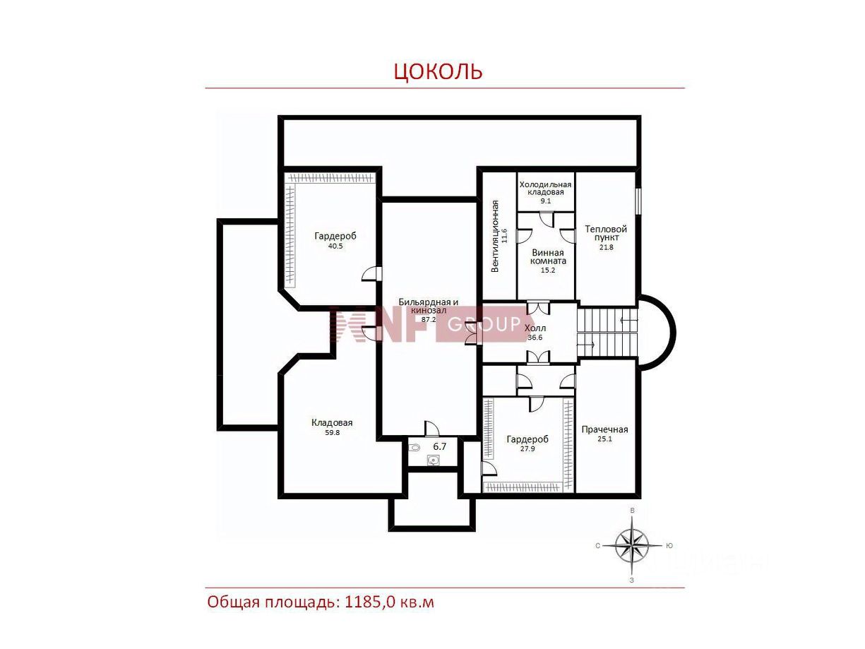 Цокольный этаж: холл, бильярдная и кинозал, с/у, 2 большие гардеробные для хранения сезонной одежды, холодильник для шуб, кладовая, постирочная, кладовая, винная комната, технические помещения.