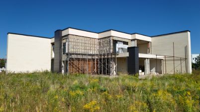 Была проведена колоссальная работа по благоустройству территории: с участка было срезано и вывезено 2 метра верхнего слоя строительного мусора, завезена земля, высажены туи, сделан дренаж. Для въезда на территорию домовладения организована большая бетонная площадка.