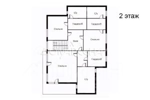 2 этаж: холл, мастер-блок: спальня, гардеробная, санузел, балкон; 2 спальни с гардеробными и ванными комнатами