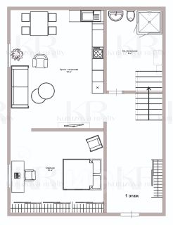 1 этаж: кухня-гостиная, спальня, санузел