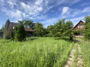 Участок: 7 соток, огорожен, правильной формы, ровный, декоративные и плодово-ягодные растения (яблони, груши, малина, смородина, туи) . Много места для строительства жилого дома. Кадастровый номер 50:20:0070511:87