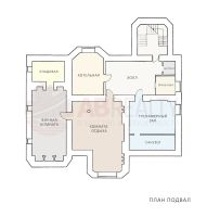 Цокольный этаж: бильярдная, кабинет с ванной, винный погреб. Домашний кинотеатр. Технич. комнаты: постирочная, кладовая, котельная, щитовая.
