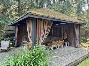 ID 542230. КП Сады Майендорф/Санаторий Барвиха. Стильный дом 1400 кв.м в престижном поселке Сады Майендорф (Санаторий Барвиха). В доме хорошо спланированы внутренние помещения, большая площадь панорамного и витражного остекления, позволяющего наслаждаться красивыми видами на участок. Здесь сохранены вековые сосны, высажены хвойные деревья и кустарники. Отличная экология, близость к мегаполису, доступность щедрой инфраструктуры, приятное соседство.