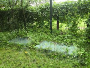 На участке многолетние плодовые деревья (яблони, вишни, сливы), ягодные кустарники.