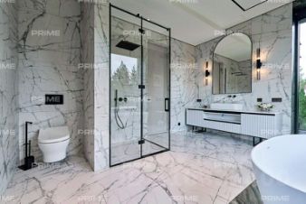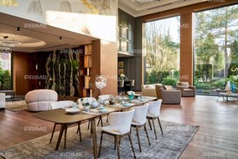 Внутреннее пространство дома продумано до мелочей. Просторная кухня и парадная столовая подойдут как для уютных семейных ужинов, так и для изысканных приемов. Гостиная с панорамными окнами наполняется естественным светом, а каминный зал с благородной отделкой станет идеальным местом для неспешных вечеров у огня. Кабинет выполнен в строгом стиле и позволит сосредоточиться на работе в уединенной обстановке.