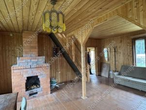 Дом 56 кв. м, 2 этажа, материал брус, перекрытия балки, окна дерево; наружная отделка - вагонка; внутренняя отделка - вагонка; отопление - камин.