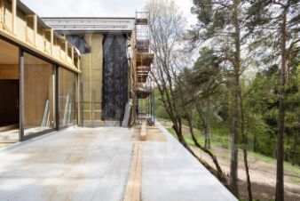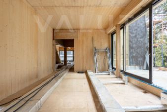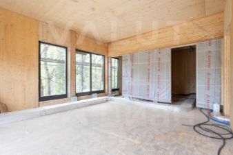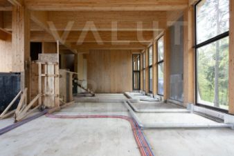 - Редкое архитектурное решение — дом собран из массивных CLT-панелей, изготовленных под заказ, их можно по-разному обыграть в отделке: оставить натуральную древесину, затонировать или покрасить
