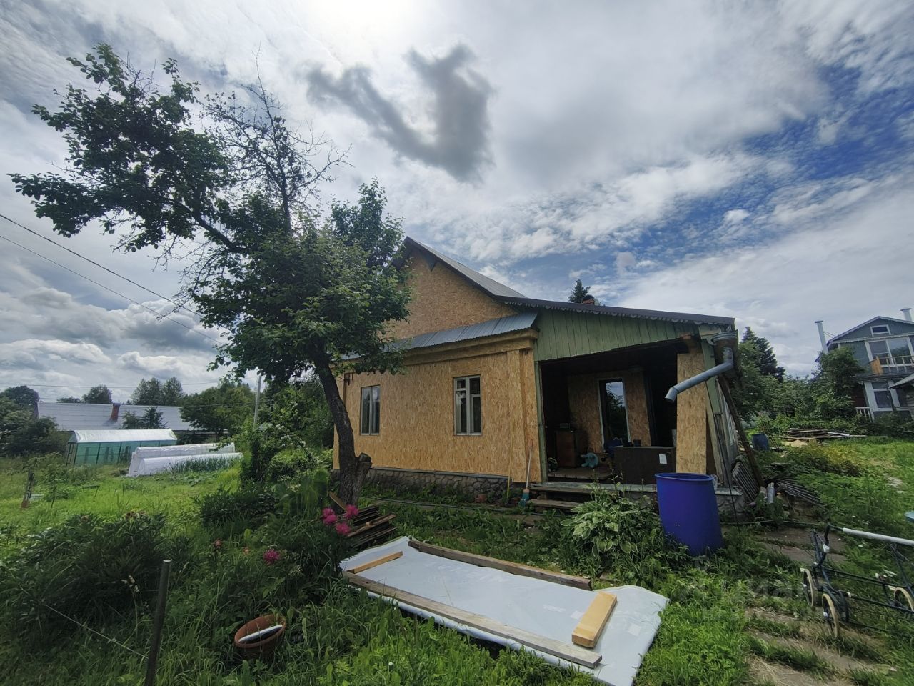 - Бытовка с летним душем пока дом в процессе, можно жить здесь.