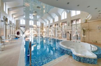 В этой загородной резиденции имеются все условия для комфортного проживания даже двух поколений семьи одновременно! Основной дом резиденции, представляет собой просторный особняк с зонированными пространствами гостиной, столовой и кухни, уютной гостиной с камином, SPA-зоной с отличным бассейном (12Х4,5), джакузи, сауной, душевыми и тренажерной, с пятью спальнями, каждая из которой с индивидуальной ванной комнатой и гардеробной, а также домашним кинозалом с барной зоной, холодильной камерой-помещением для вина, хозяйственно-бытовыми и техническими помещениями.
