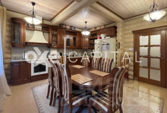Второй уютный деревянный дом абсолютно автономный и имеет даже отдельный въезд на территорию, гараж и гостевую парковку. В доме прекрасно оборудованы гостиная с барной зоной, кухня-столовая с выходом на просторную террасу, а также 3 спальни, каждая из которой с индивидуальным санузлом и гардеробом.