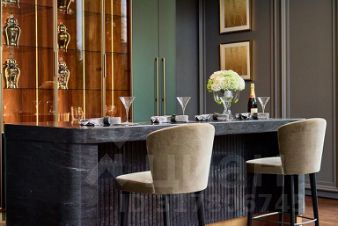 Первый этаж: холл, гардеробная, гостевой санузел, кухня-столовая, кладовая при кухне, гостиная, парадная гостиная с барной зоной, вторым светом и выходом на просторную террасу, кабинет (спальня) со своим санузлом, гостевая спальня с санузлом и гардеробной.