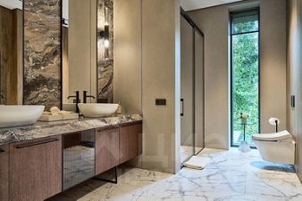 Второй этаж: 2 гостевые спальни с санузлами и гардеробными, мастер-спальня с ванной комнатой и гардеробной. В доме установлен лифт и приточно-вытяжная вентиляция.