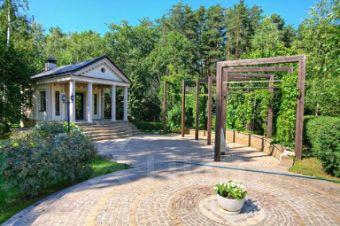 Величественное домовладение площадью 1200 кв.м, расположенное на земельном участке в 90 соток в живописном коттеджном поселке "Романово", всего в 15 км от МКАД по Рублево-Успенскому шоссе. Участок украшает утонченный ландшафтный дизайн, где природа сливается с архитектурой дома.