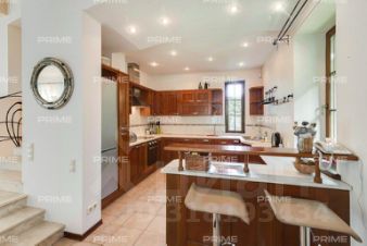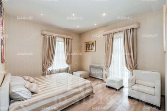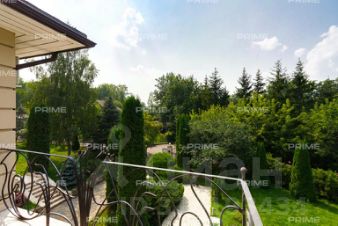 Дом, выполненный в классическом стиле, с балконами, просторной террасой, широкой лестницей ведущей на террасу, расположен на участке среди величественных туй, голубых елей, красивых лиственных деревьев и декоративных кустарников, живописных цветников.