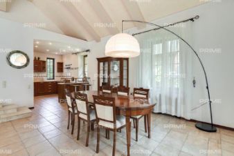 Комфортная внутренняя планировка дома, светлые интерьеры, удобная мебель, гостиная со светлым камином, просторная столовая с овальным столом, выполненным из дерева и интересными стульями с мягкой светлой обивкой, мраморная лестница с красивыми кованными перилами, зеркала в живописных рамах - все гармонично и привлекательно.