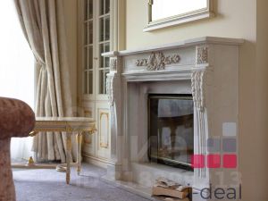 Воздушные камины белого мрамора вкупе с панорамными окнами на дворцовый парк.