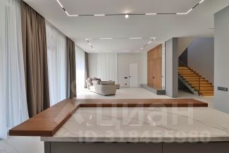 Лот 45047. Дом под ключ 650 кв.м. на участке 16.00 соток. Количество спален: 5. Коттеджный посёлок "Заря", Рублево-Успенское шоссе, 19 км от МКАДУчасток правильной прямоугольной формы, ровный, газон, по периметру посажены хвойные деревья. Парковка для автомобилей.Коттеджный поселок "Заря", расположенный на Рублево-Успенском шоссе. Новый дом в современном стиле хай-тек, полностью под ключ, частично меблирован. Конструктив: монолитные фундамент и перекрытия, стены — кирпич, плоская кровля, панорамное остекление. Интерьер выполнен в пастельных тонах, за счет панорамного остекления дом светлый, атмосферный. Комфортная планировка с пятью спальнями, гостиной. Центральные коммуникации делают проживание в доме удобным. Поселок строго охраняемый. Высокоразвитая инфраструктура района. Отличная транспортная доступность, платная дорога.Планировка дома:1 этаж: прихожая, гостиная-кухня-столовая с выходом на летнюю террасу, спальня с с/у и гардеробной, котельная, гараж на два автомобиля.