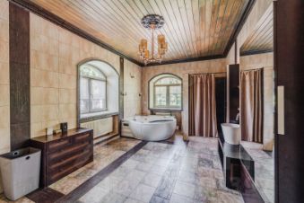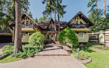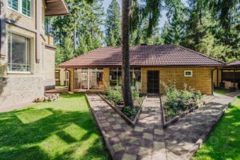В доме продуманные планировки с просторными комнатами и санузлами при каждой спальне. В контуре дома оборудован бассейн, а также есть встроенный тёплый гараж для двух автомобилей. На территории участка, помимо основного дома, расположены: двухэтажный гостевой дом (1 этаж: холл, гостиная, кухня, санузел; 2 этаж: 4 спальни, 2 санузла), отапливаемая летняя кухня с зоной барбекю и летний гараж на два автомобиля. Все коммуникации центральные, дополнительно резервные скважина и септик.