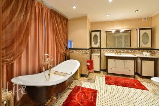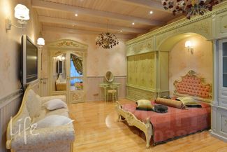 1 этаж: прихожая, гардеробная, гостевой с/у, гостиная с камином и вторым светом, кухня, столовая, 3 спальни с ванными комнатами, хозяйская спальня с ванной комнатой и гардеробной, кинозал-комната отдыха, винный погреб.