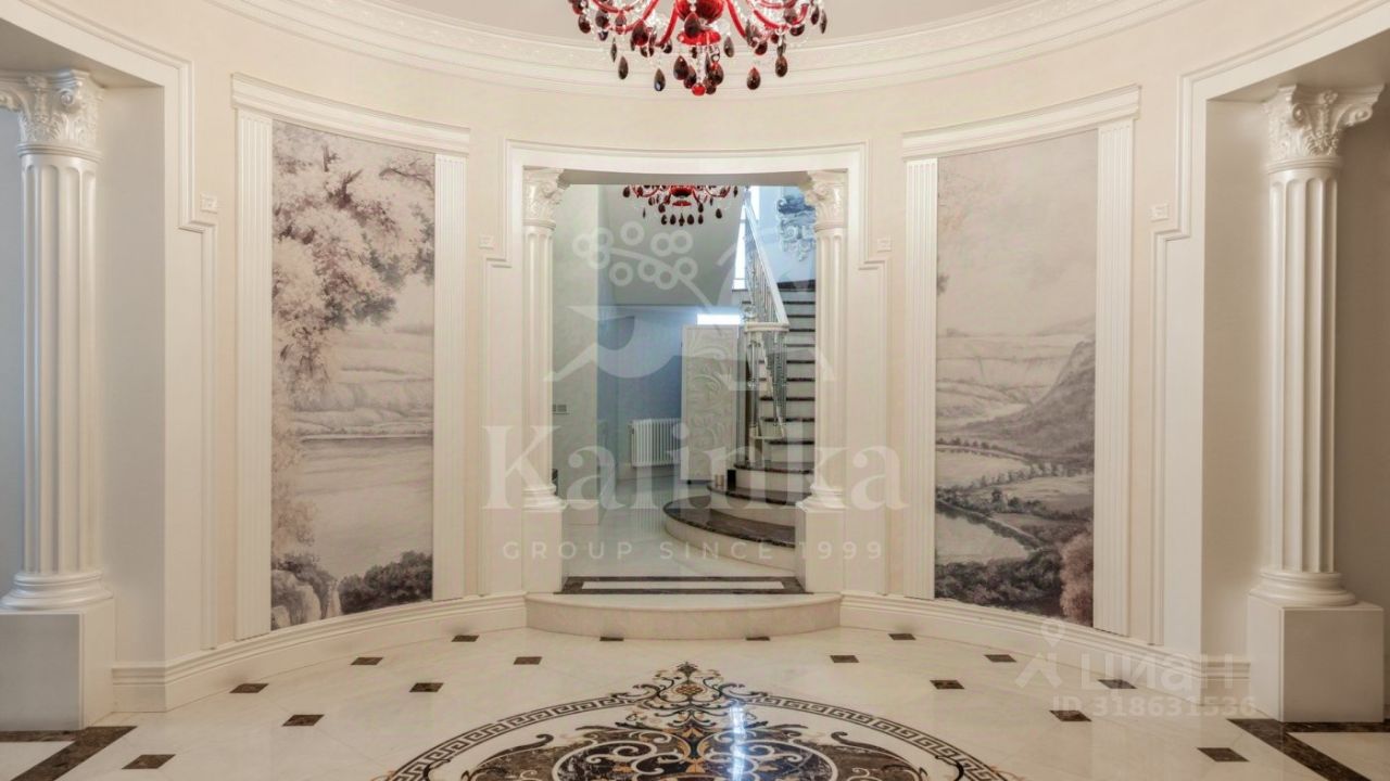 В доме уютная гостиная с выходом на террасу, 5 полноценных спален (3 из которых с собственными санузлами и гардеробными), просторный кабинет с камином (при необходимости может быть использован как дополнительная спальня), оборудованный тренажерами спортзал, домашний кинотеатр и бильярдная.