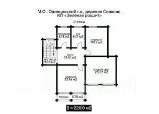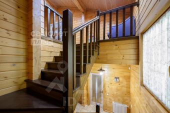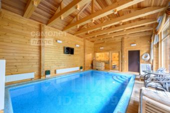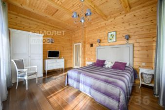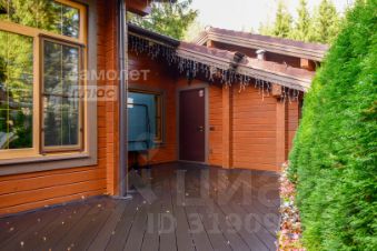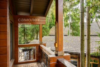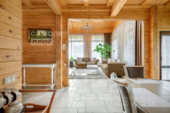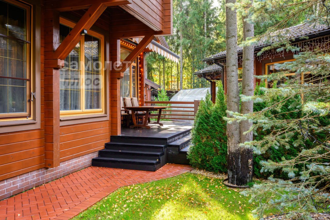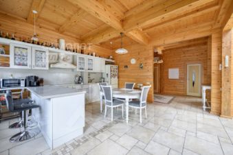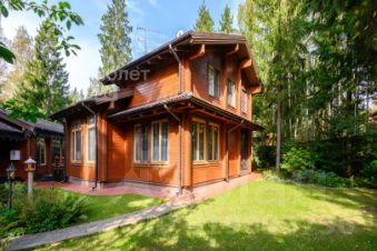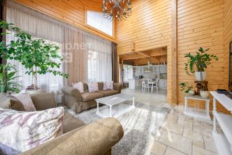 Дом выполнен из натурального дерева (алтайская сосна) и обработан горячим воском (это означает, что никакой дополнительной обработки не требуется). Крыша - черепица Braas. В доме установлены пожарная и охранная сигнализация, кондиционирование, система автоматического увлажнения воздуха. На окнах двухкамерные стеклопакеты из натуральной сосны, бронированные американской пленкой. Материал пола - керамогранит с подогревом. Мебель в доме из экологически чистых материалов (производство - Франция); бытовая техника высочайшего качества от лучших мировых производителей. Светильники в доме и на улице ручной работы (производство - Италия) Функциональная планировка: на 1 этаже расположились спальня для гостей 19,14 м², каминный зал 25,57 м², просторная кухня-столовая 23,12 м², санузел с душевой кабиной 8,13 м² и веранда 15,85 м². Планировка 2 этажа: гардеробная комната 8,13 м², 2 спальни 19,14 м² и 23,16 м², санузел с ванной 8,17 м², второй свет 25,57 м².