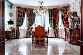 Кирпичный дом площадью 735 кв. м расположен на лесном участке размером 30 соток в элитном охраняемом поселке "Сосновый Бор", который находится в заповедной зоне векового леса.