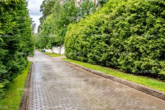Дом расположен на живописном участке с вековыми соснами, имеющим уникальное расположение с двумя соседями. Участок правильной квадратной формы. Проведены ландшафтные работы: высажены кустарники и декоративные деревья, вымощены дорожки и установлено освещение.