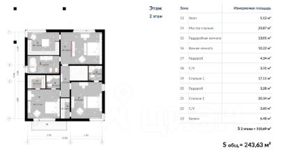 На втором этаже — полноценная мастер-спальня с большой гардеробной и ванной комнатой, а также две детские спальни с собственными санузлами и гардеробными. В одной из комнат имеется балкон.
