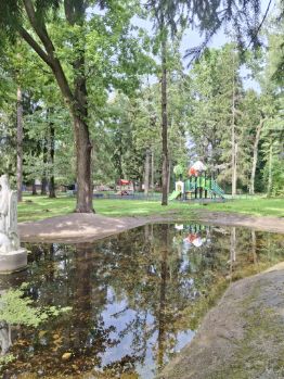 300 метров от дома расположилась большая зона для отдыха с детьми или с соседями!! Каток, теннисный корт, детская площадка, прогулочные аллеи со скамейками и даже Пушкин А.С. !! Так же пешком есть магазины, почта и др.инфраструктура!!