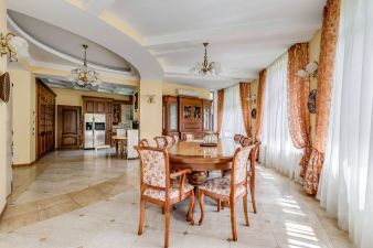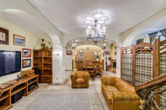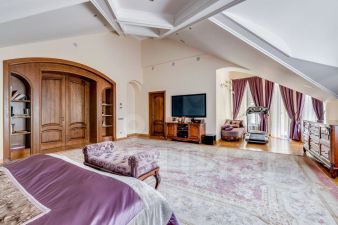 В доме организован банный комплекс с сауной, купелью, хаммамом, джакузи и комнатой отдыха со своей кухней, каминным залом и массажным кабинетом.