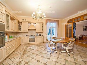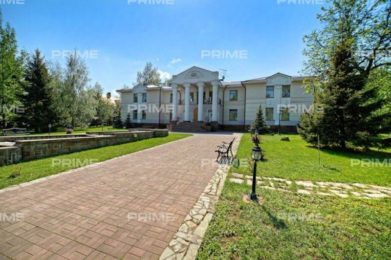 Большой особняк с величественными белоснежными колоннами, балконами, балюстрадой, выполненный в стиле старинной русской усадьбы, расположен на просторном участке в окружении столетних елей и сосен, стройных белоствольных русских берез, роскошных газонов, мощеных дорожек и площадок, изящных скамеек и функциональным уличным освещением.
