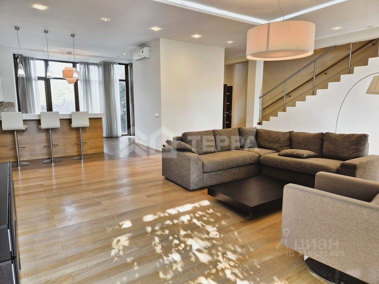 Рублево-Успенское шоссе, 9 км от МКАД. Жуковка. Продается таунхаус Дом, общей площадью 312 м.кв., расположен на участке в 3 сот. Все коммуникации - центральные. Гараж - Встроенный. Планировка: Цоколь: гараж на 2 м/м, кладовая, коридор, постирочная, котельная; 1 этаж: холл, кухня-столовая, гостиная, веранда, с/у;; 2 этаж: спальни с с/у, спальня, с/у, комната совбодного назначения, балкон;; 3 этаж: хозяйская спальня с с/у и гардеробной, балкон; лот: 9696