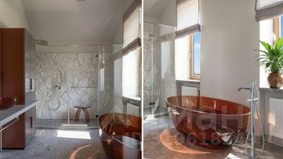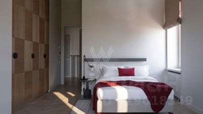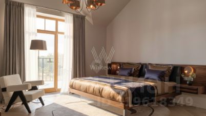 Усово-8. Новый загородный дом площадью 472 м² расположен на полевом участке 8 соток. Архитектура дома подчеркнута панорамным остеклением в пол, благодаря которому внутреннее пространство наполнено воздухом и солнечными лучами. Современные дизайнерские интерьеры оформлены в светлых нейтральных тонах и дополнены стильной мебелью, встроенной бытовой техникой и качественной сантехникой. Климатический комфорт обеспечивает система кондиционирования.