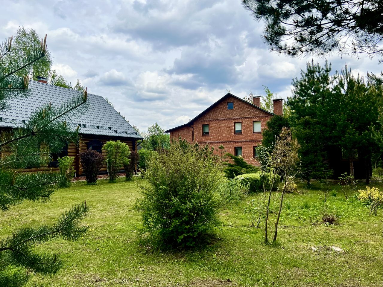 На участке вековые ели, многолетние сосны газон и другие декоративные насаждения!
