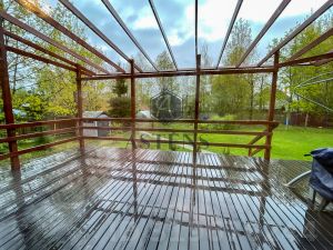1-й этаж: кухня-гостиная, камин, выход из кухни на патио (площадь ), санузел с душевой и ванной + сауна, комната для одежды и обуви.