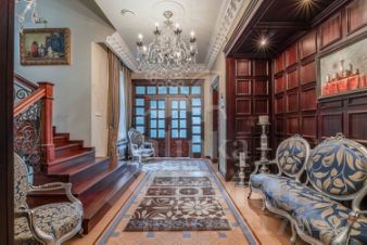 Внутреннее оформление дома выполнено французскими дизайнерами с применением оригинальных французских и итальянских интерьерных решений - текстиля, элементов мебели, освещения, стекла, фарфора и фаянса. Напольные покрытия, двери, лестничные пролеты выполнены из ценных пород африканского красного дерева.