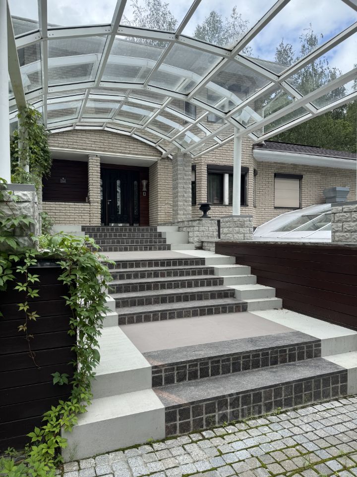 2 этаж: мастер-спальня, 2 спальни, большой санузел с ванной. Есть крытая трасса с зоной барбекю.